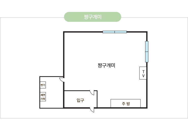 객실형태 : 원룸형, 온돌룸1개, 화장실1개