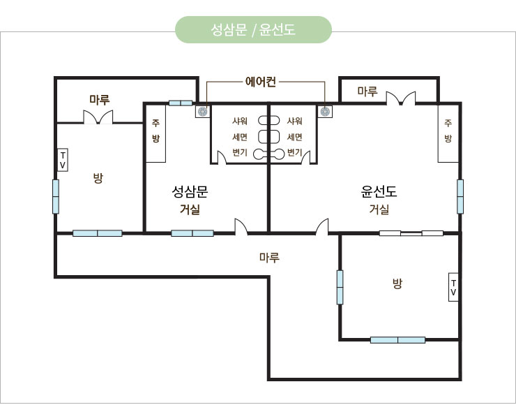 객실형태 : 독채, 온돌룸2개, 화장실1개