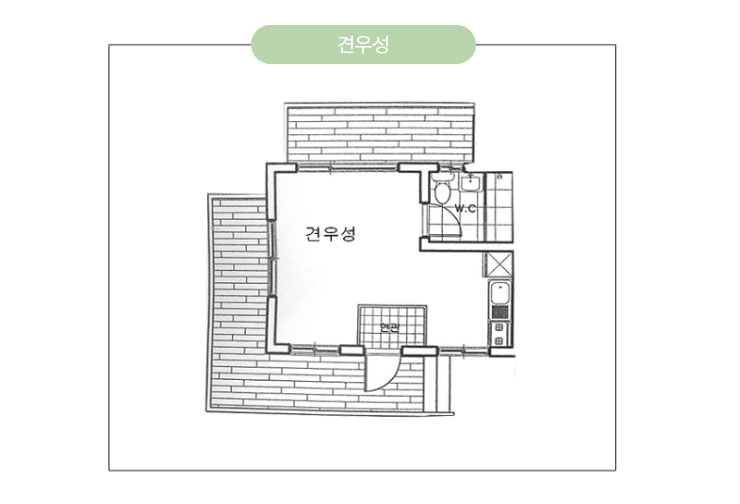 객실형태 : 원룸, 온돌룸1개, 화장실1개