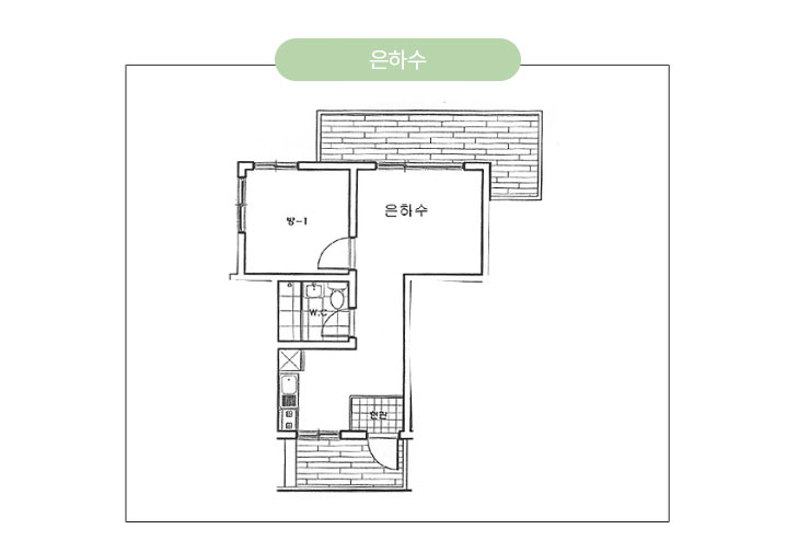 객실형태 : 원룸, 온돌룸2개, 화장실1개