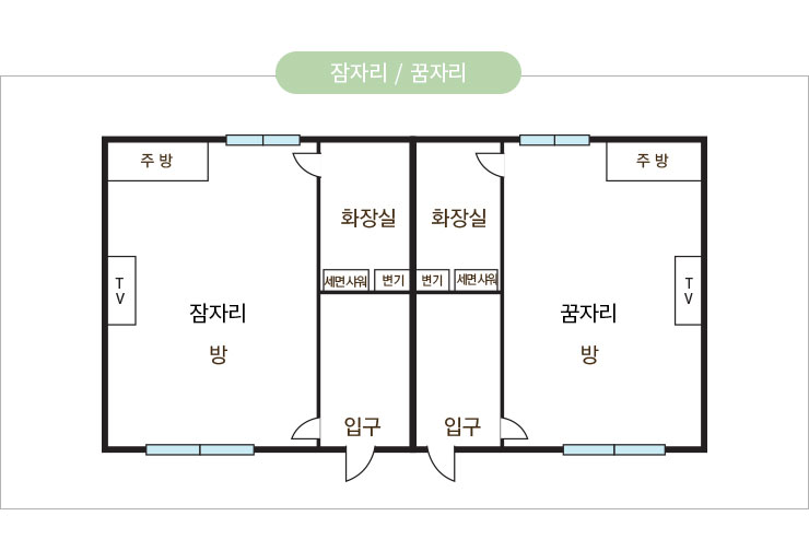 객실형태 : 원룸형, 온돌룸1개, 화장실1개