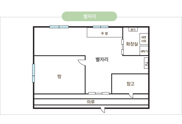 객실형태 : 독채, 온돌룸2개, 화장실1개
